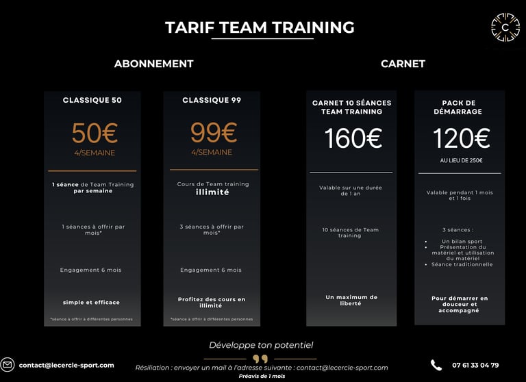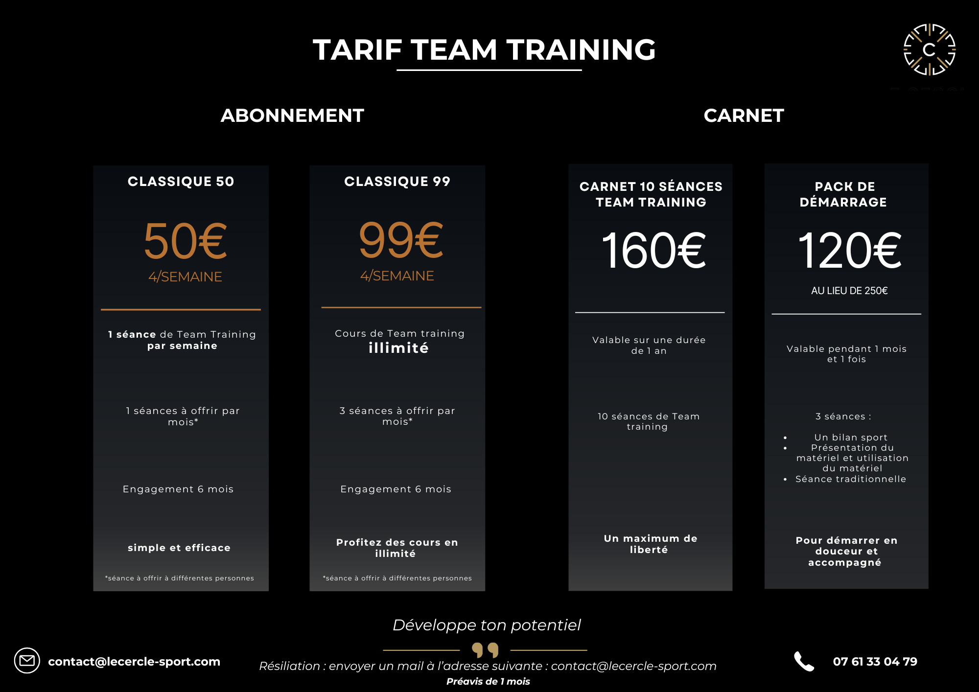 ABONNEMENTS & CARNETS TEAM TRAINING
